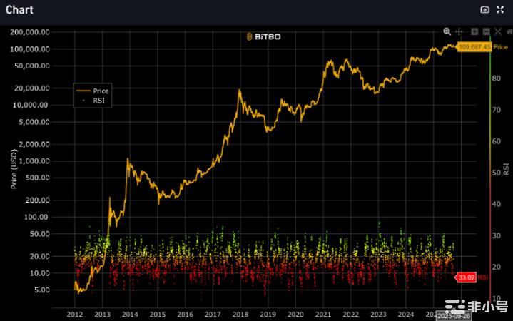 據 Bitbo,9/26 比特幣 14 日 RSI 為 33.02,接近超賣閾值(<30)。顯示短線具一定反彈空間,但賣壓仍重。RSI 全週走低,動能偏弱;若跌破 30,將強化超賣訊號。