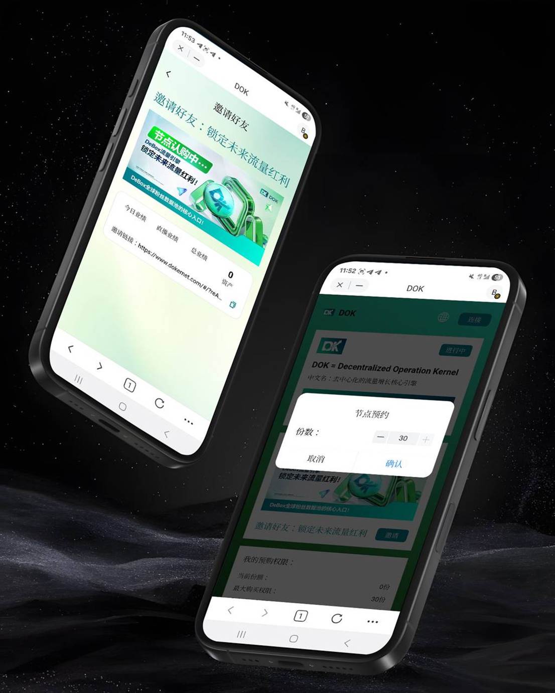 DOK以激励驱动网络扩展。所有单笔投入≥200USDT的用户被视为有效参与者,可触发动态奖励机制: