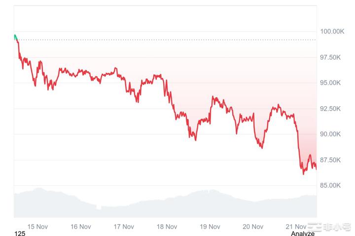 11月20日,走势持续震荡下跌,多次跌破 $90,000,最低逼近 $88,000。