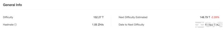 截至11月21日,全网算力达到1.05ZH/s,挖矿难度为152.27T。预计下一次难度调整将在11月27日 进行,预估下跌2.28%,调整后难度约为148.79T。