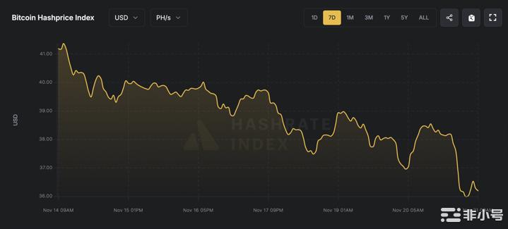● 11 月 21日:本周低点 35.99 美元/PH/s/天