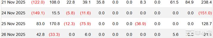 根据 Farside Investors 的 BTC‑ETF Flow 追踪数据,这种先流出后小幅回补,反映出市场在底部附近可能出现结构性动向反转。值得注意的是,尽管资金流入,但整体流入量仍远不能覆盖此前累计数亿美元规模的流出,市场流动性依然偏紧。综合来看,本周 ETF 资金逻辑体现为:在 11月初至中旬的强烈赎回后,11月25日 ETF 出现试探性回补,标志着机构对当前低价区的谨慎入场,有可能为中期筑底铺垫,但短期仍需观察资金能否持续流入。