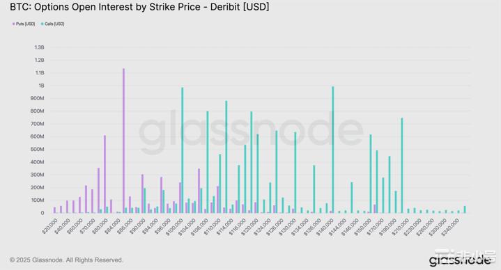 比特币期权未平仓合约行权价分布