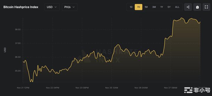 - 11 月 27日:本周高点 38.85美元/PH/s/天
