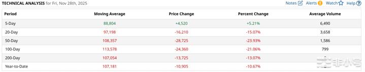 - MA5(5日均线):$88,804
